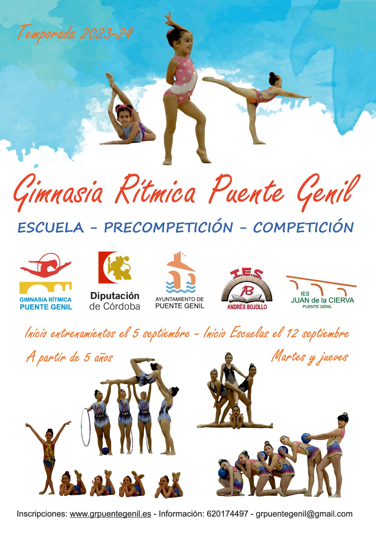 En Gimnasia Rítmica Puente Genil abrimos periodo de inscripciones para la temporada deportiva 2023-24. Ofrecemos tres niveles formativos para edades a partir de 5 años : Escuela, Precompetición y Competición. Los entrenamientos se llevaran a cabo los martes y jueves, los niveles competitivos darán comienzo sus entrenamientos el día 5 de septiembre mientras que el nivel de Escuela Deportiva lo hará el 12 de septiembre. Comenzaremos en el IES Andrés Bojollo a la espera de confirmar nuestra posible ubicación de entrenamientos en un pabellón municipal. La Escuela tendrá dos turnos horarios, agrupados por la edad de las participantes, el primero para las edades más pequeñas a las 16,00 h y el segundo para el resto de edades a las 17,15 h. Las inscripciones se tramitarán a través de la página web http://grpuentegenil.es en la pestaña de inscripción gimnastas y accediendo con el DNI y una contraseña, el resto será subir la documentación requerida. Las plazas se asignarán por orden de validación de las inscripciones. Información en el teléfono 620174497 o en el correo grpuentegenil@gmail.com
